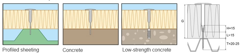 • Fastening recommendations: for thermal and waterproofing materials on a flat roof